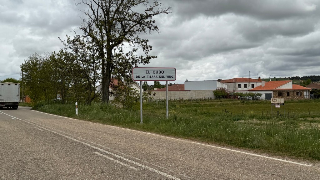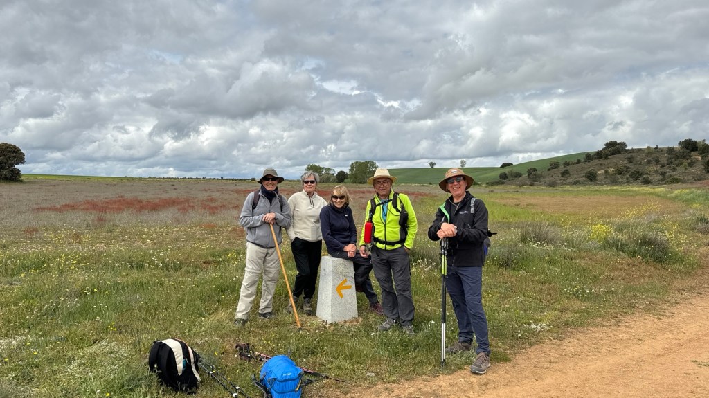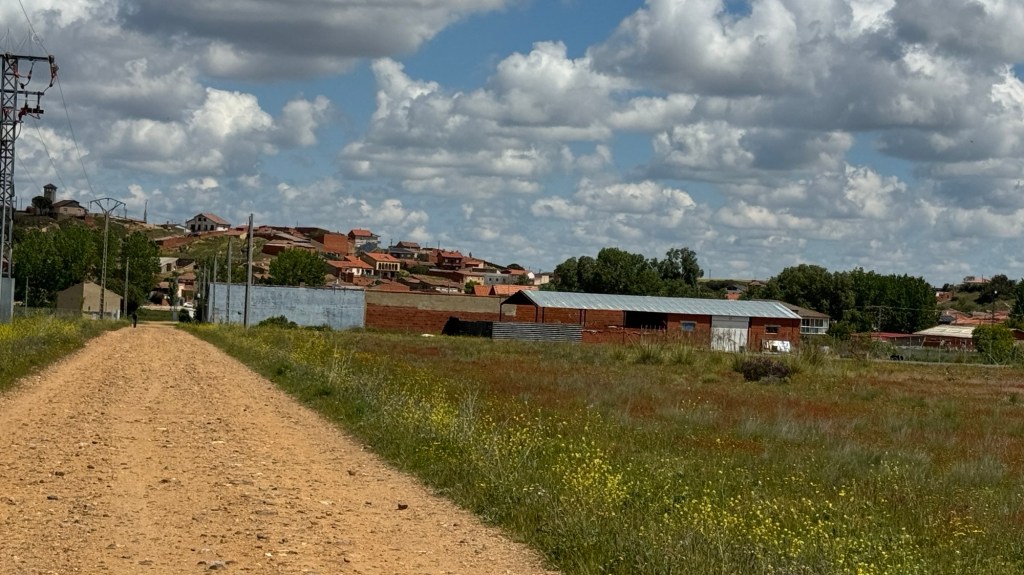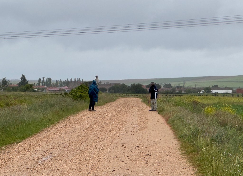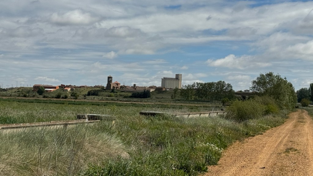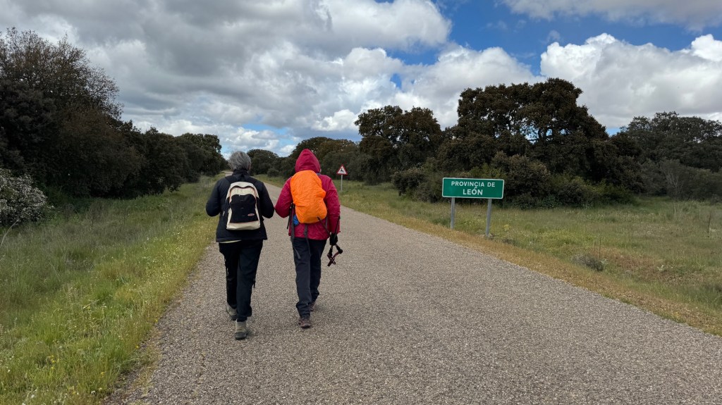 Finalmente conseguimos localizar algunas señales y llegar al pueblo siguiente, Santa Elena de Jamuz. A la salida del lugar, después de decidir que entre seguir por la carretera o meternos al interior, acordamos ir por senderos. Pero antes hacemos una corta parada campestre para tomar fruta, frutos secos e incluso alguno un poco de queso.