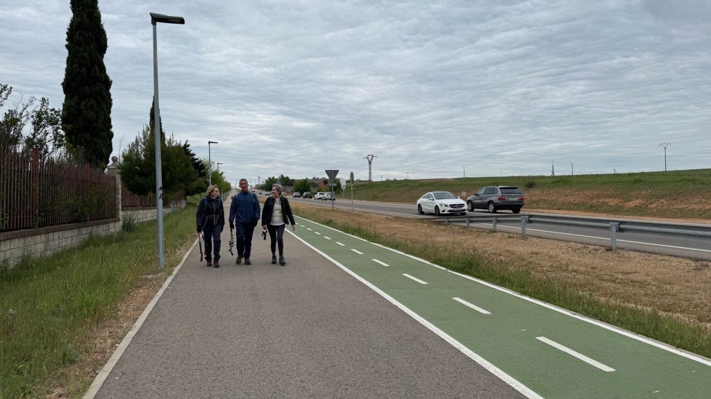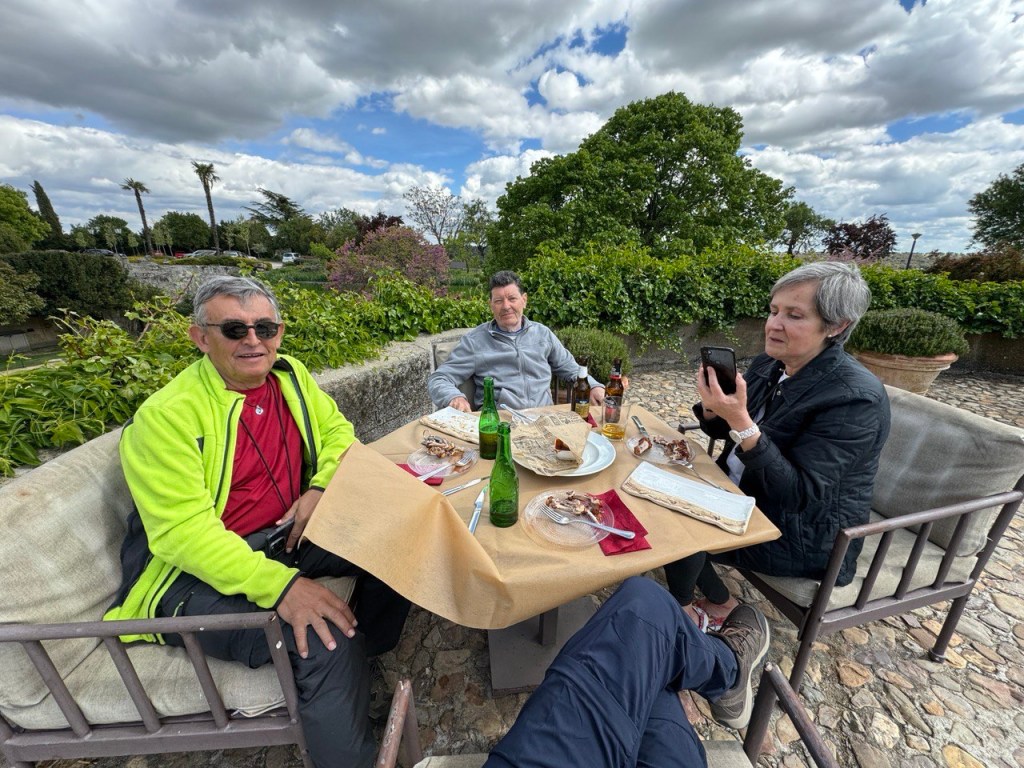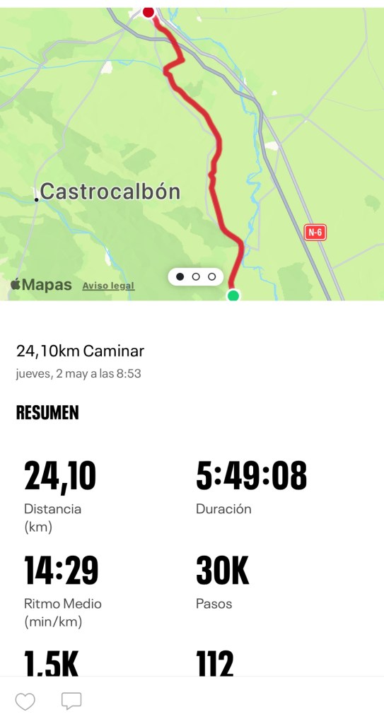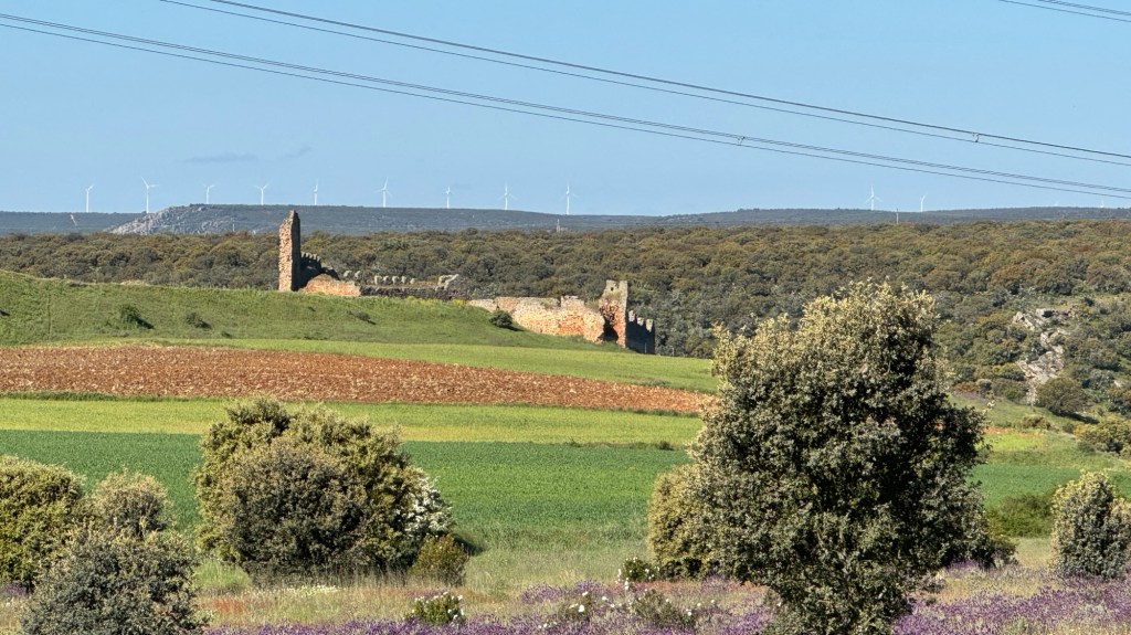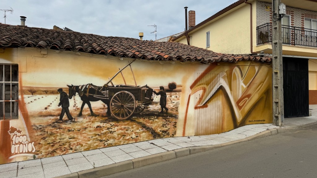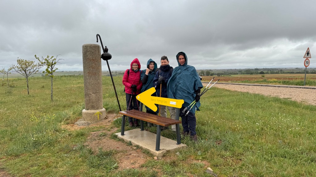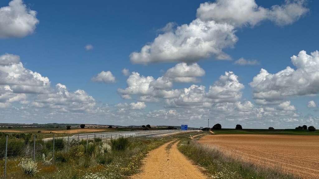Finalmente conseguimos localizar algunas señales y llegar al pueblo siguiente, Santa Elena de Jamuz. A la salida del lugar, después de decidir que entre seguir por la carretera o meternos al interior, acordamos ir por senderos. Pero antes hacemos una corta parada campestre para tomar fruta, frutos secos e incluso alguno un poco de queso.