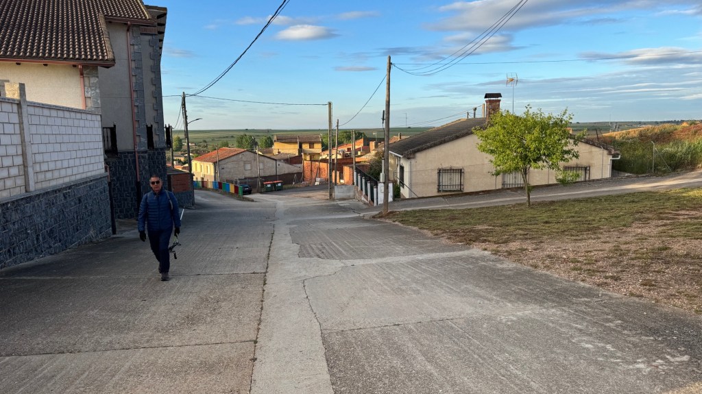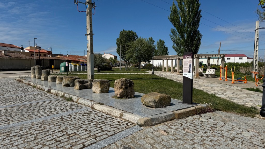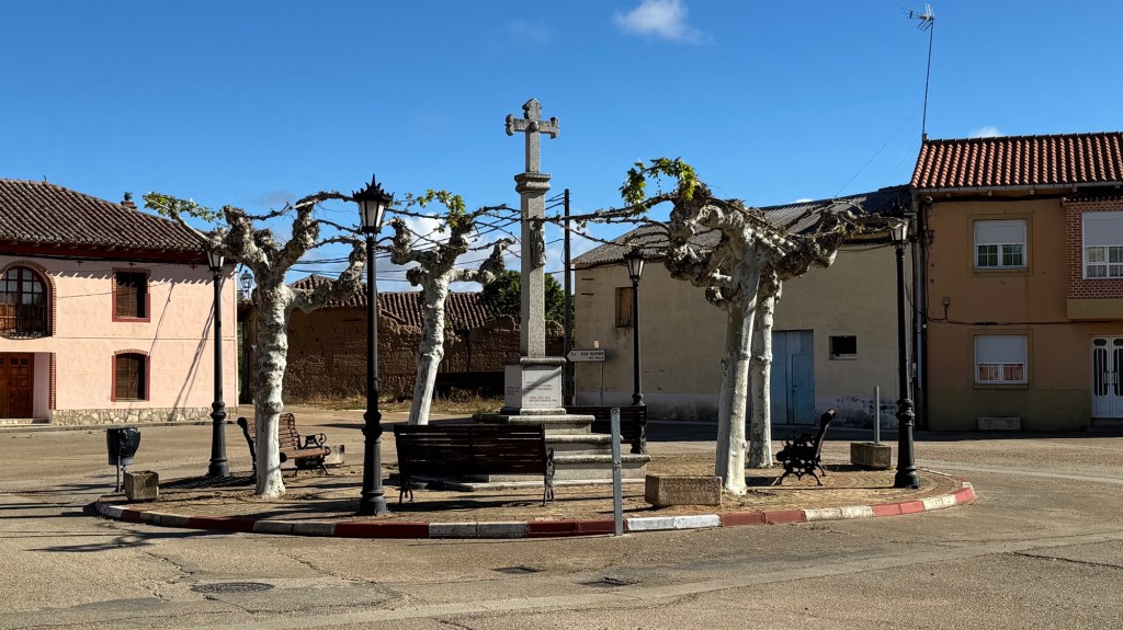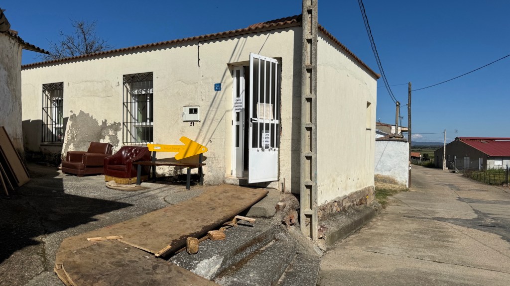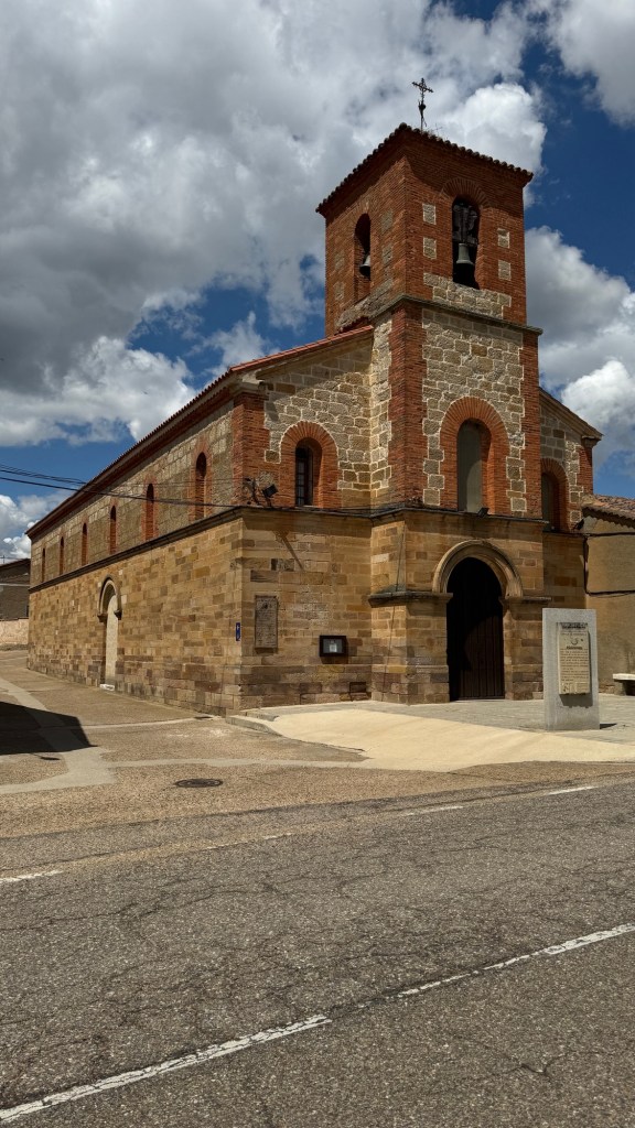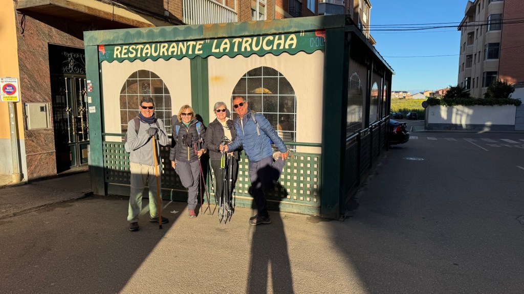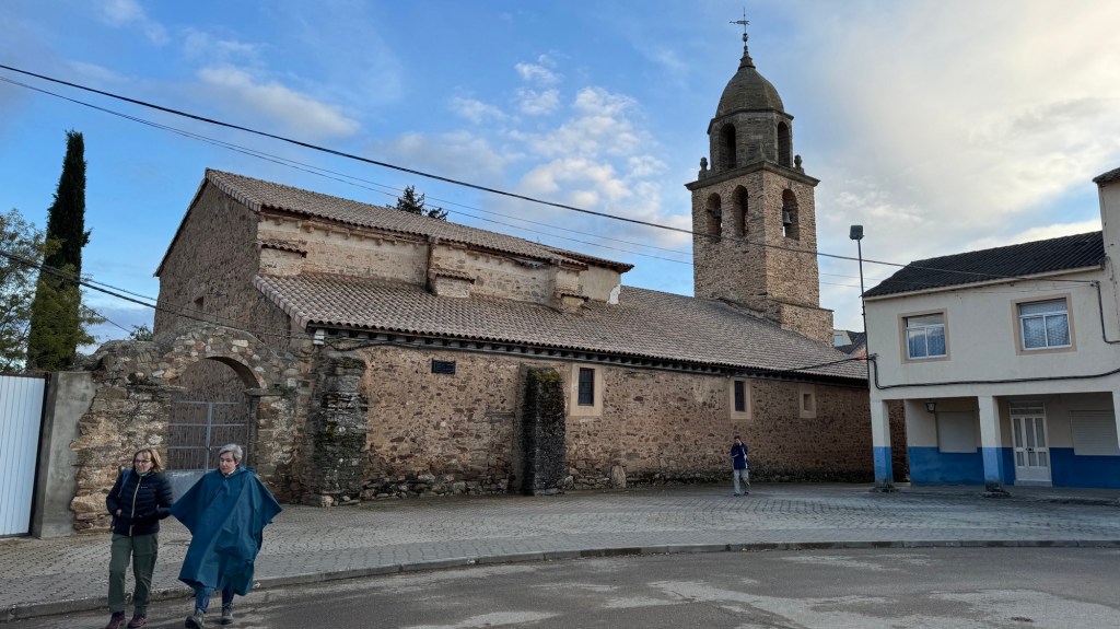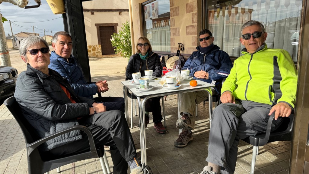 La primera parada la hicimos cuando estábamos cerca de cumplir 9 km, y lo que inicialmente pensamos que era Villanueva de Jamuz, resultó ser Quintana del Marco. Encontramos un bar frente a la iglesia donde nos tomamos unos cafés y pinchos de tortilla, oreja y chorizo. Todo estupendo para continuar.la marcha.