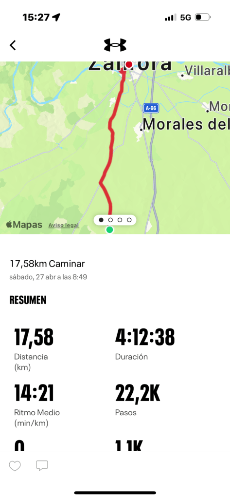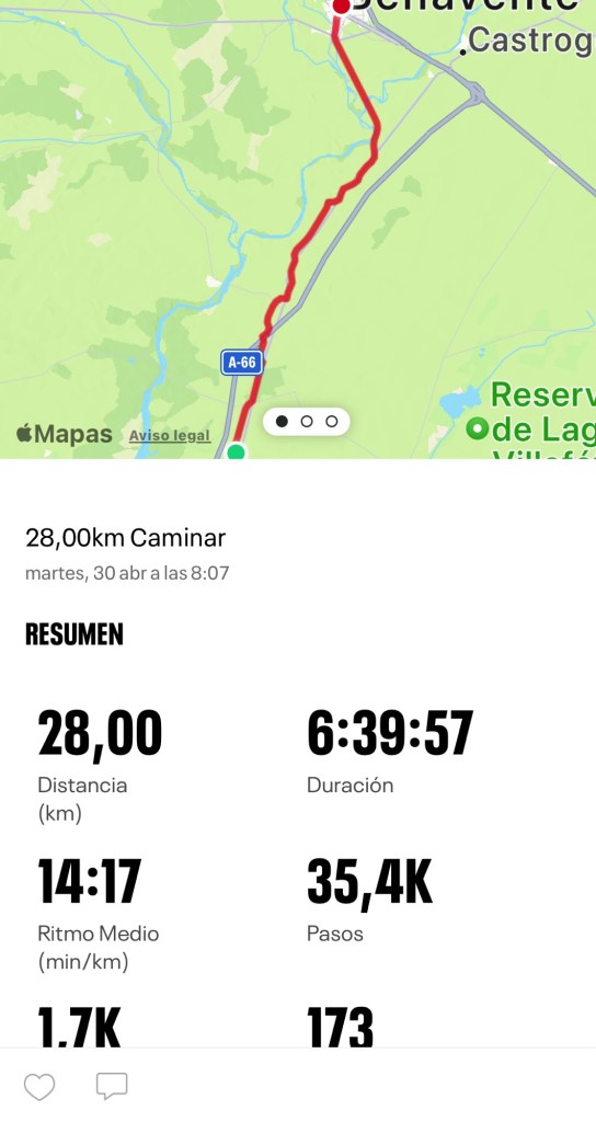 Reanudada la marcha, empiezan los problemas de información porque no hay señales, lo que indica Gronze es impreciso, y un par de veces tenemos que desandar parte del recorrido, lo que fastidia más si cabe porque ya estás deseando llegar.