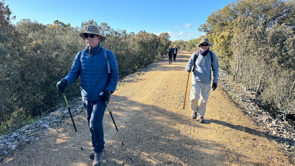 Ya en marcha por la carretera, yo me paré a aligerar vestuario, porque en principio se aseguraba que haría mucho frío y no era para tanto. Así que mientras el resto de la parroquia continuaba la ruta, yo me quedé un poco atrás. Y con tanto reorganizarme, se me cayó un guante en la carretera y no fui consciente de ello hasta un par de cientos de metros más allá, con lo cual hube de regresar a buscarlo y luego tuve que poner marcha de paseo marítimo para alcanzarlos.