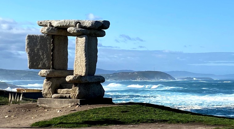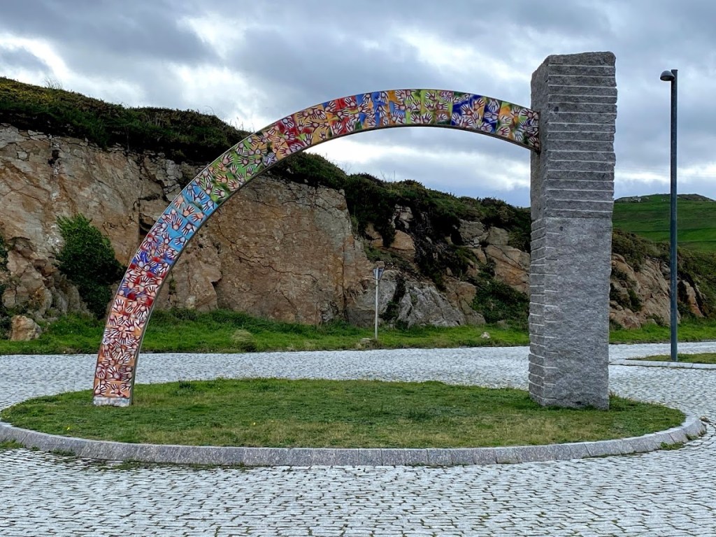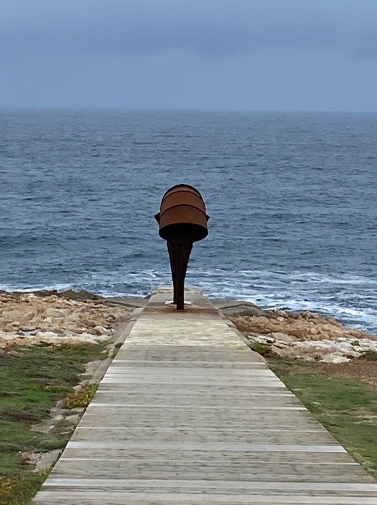 A partir de esa rotonda, tomamos la dirección hacia la derecha, donde se encuentran las otras esculturas. Desde allí se divisa una buena imagen de los tres cubos situados en la península de Punta Herminia, en el denominado Monte dos Bicos, que agrupa una serie de petroglifos de la Edad del Hierro con formas geométricas, signos y cruces tallados en la roca. En el saliente de Punta Herminia está también la Caracola, que se ha convertido en un elemento muy representativo de la zona.