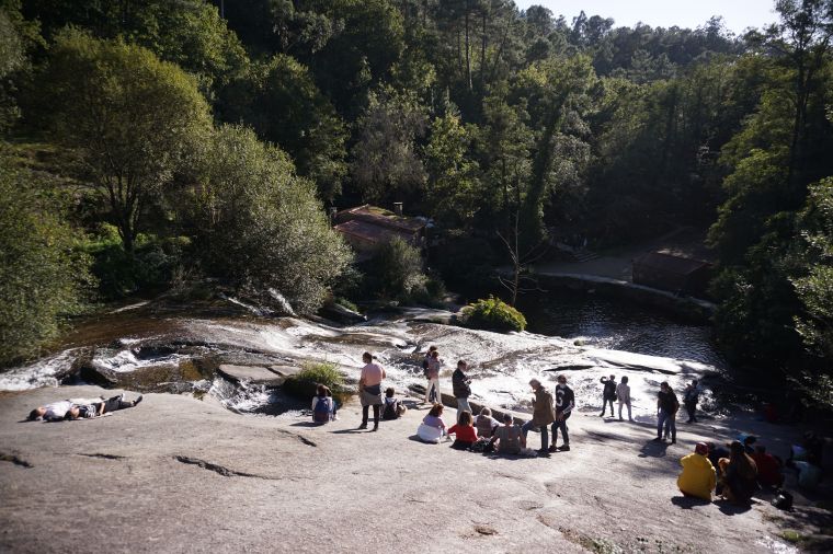 Con esos mimbres, y buscando en su libreta de notas, Ipi organizó un finde de visitas diversas por la zona de Moraña, que consistían en una visita al Parque arqueolóxico de Campo Lameiro, un recorrido por la Muiñada y cascadas del rio Barosa, visita a la iglesia de Los Milagros de Amil y a la mañana siguiente subida al Miradoiro das 3 Rias y aprovechando, descubir y visitar la Porta do Alen (del más allá). Todo eso integrado en la estancia y cena en el Pazo La Buzaca.