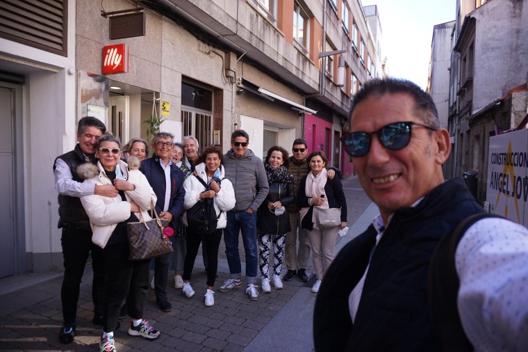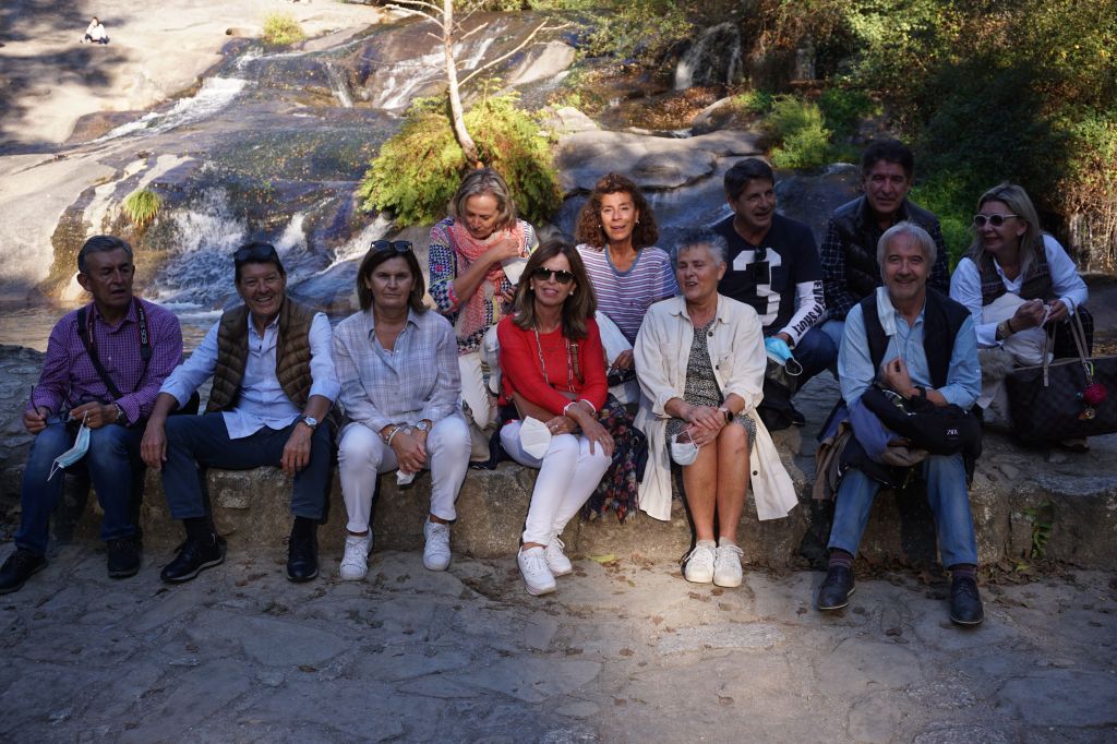 Terminada la comida, nuevamente a los coches para ir hasta las cascadas el Barosa. Los muiños la verdad están muy deteriorados y poco tienen que ver, pero en cambio a todos gustaron las cascadas y el paisaje en general, y tuvimos ocasión de hacer numerosas fotos de grupo para el recuerdo. Terminada esa visita, nuevamente a los coches para ir hasta el santuario de Los Milagros de Amil, que a mi personalmente no me causó ninguna impresión especial. Una iglesia de planta octogonal en la que casi lo más llamativo era la escalinata de acceso y la «fauna» asistente a un bautizo que alli se celebraba en esa tarde. Con lo cual, terminado ese recorrido, ya nos dirigimos al Pazo donde nos alojamos, con la idea de aprovechar allí el resto de la tarde.