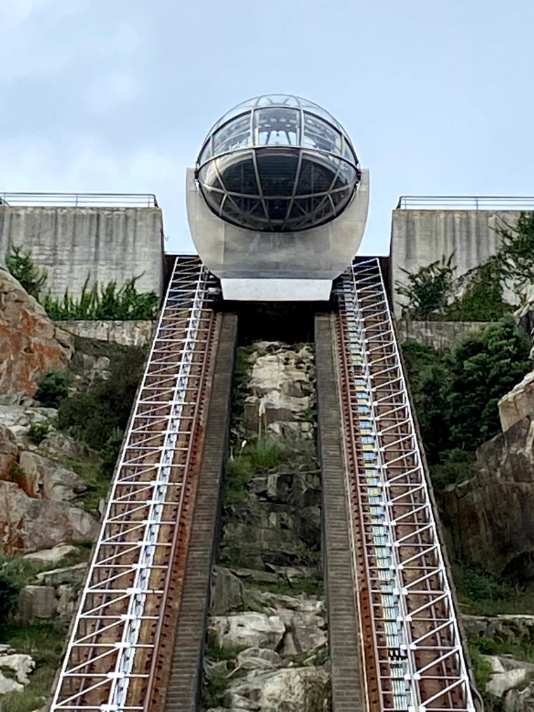 Dejando atrás el Milenium, enfilamos la fuerte subida que nos lleva hacia el Pulpo, punto de parada de muchos turistas para fotografiarse con el mar y la Torre al fondo. Y un poco más adelante, la Bola de cristal que nos lleva a lo alto del Monte de San Pedro.