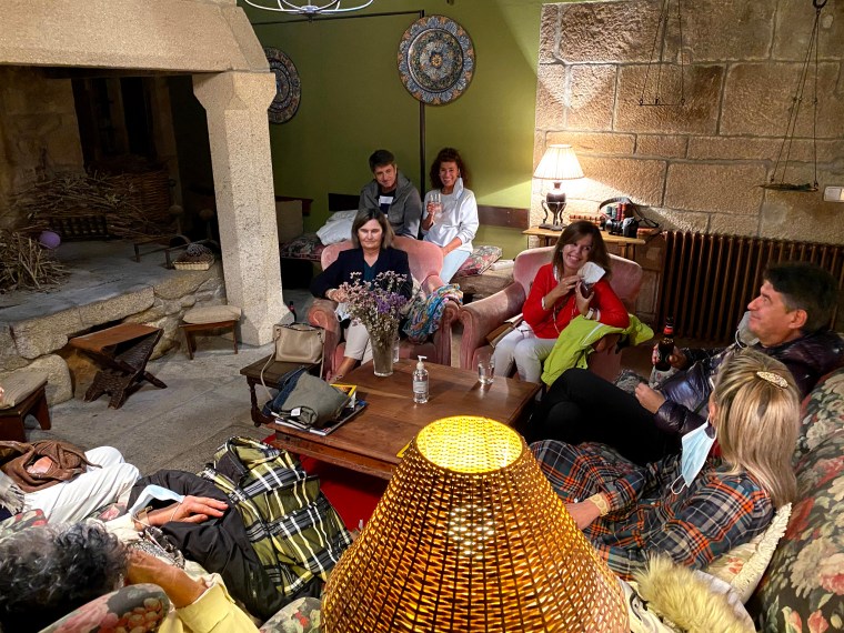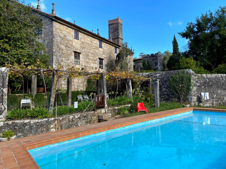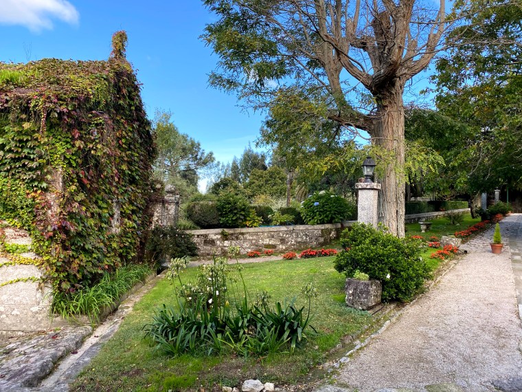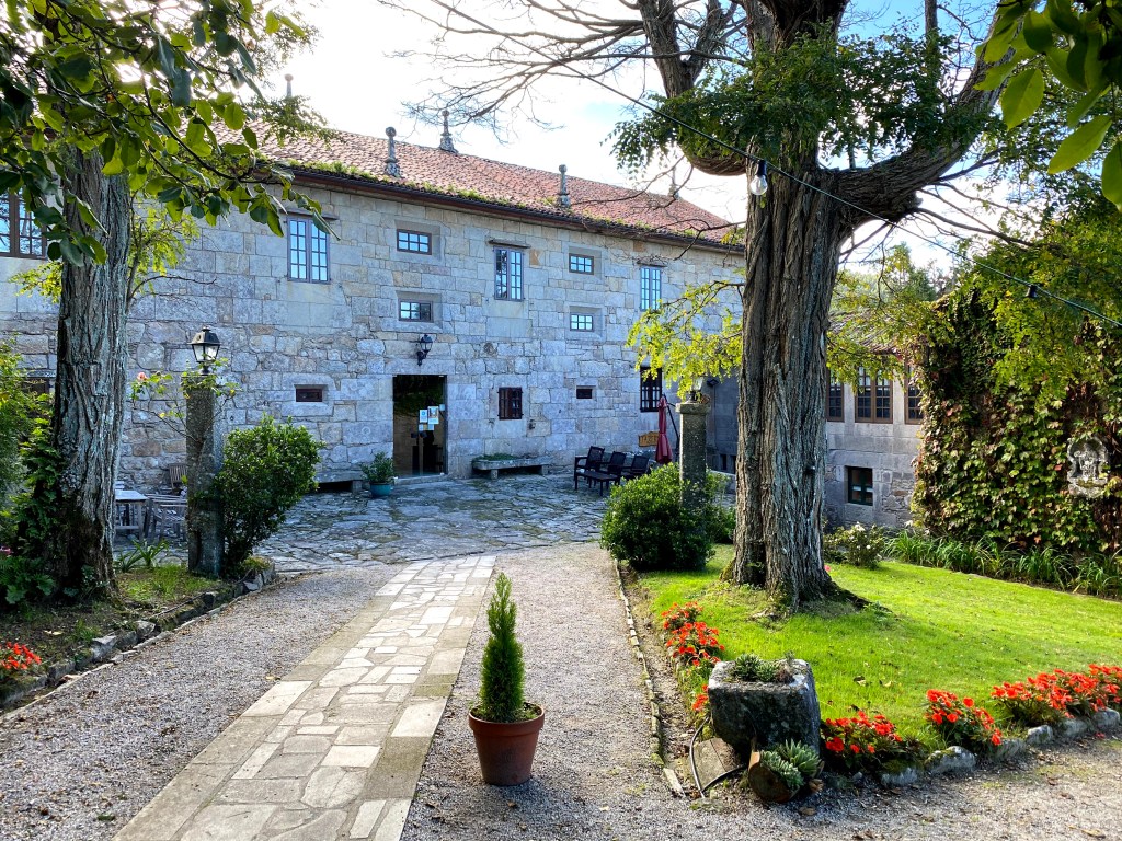 El Pazo La Buzaca es una preciosidad. Ubicado en el municipio de Moraña tiene unos jardines y unas instalaciones perfectas para disfrutar de una estancia relajada en plena naturaleza. Nos alojamos en la zona de las antiguas caballerizas, y tras un recorrido por los exteriores nos juntamos (con mascarilla, por supuesto) en un salón perfecto para nuestro grupo, en el que había incluso una hermosa lareira en la que podríamos haber asado castañas de no ser porque ya se acercaba la hora de la cena, que tras una comida abundante también iba a ser copiosa.