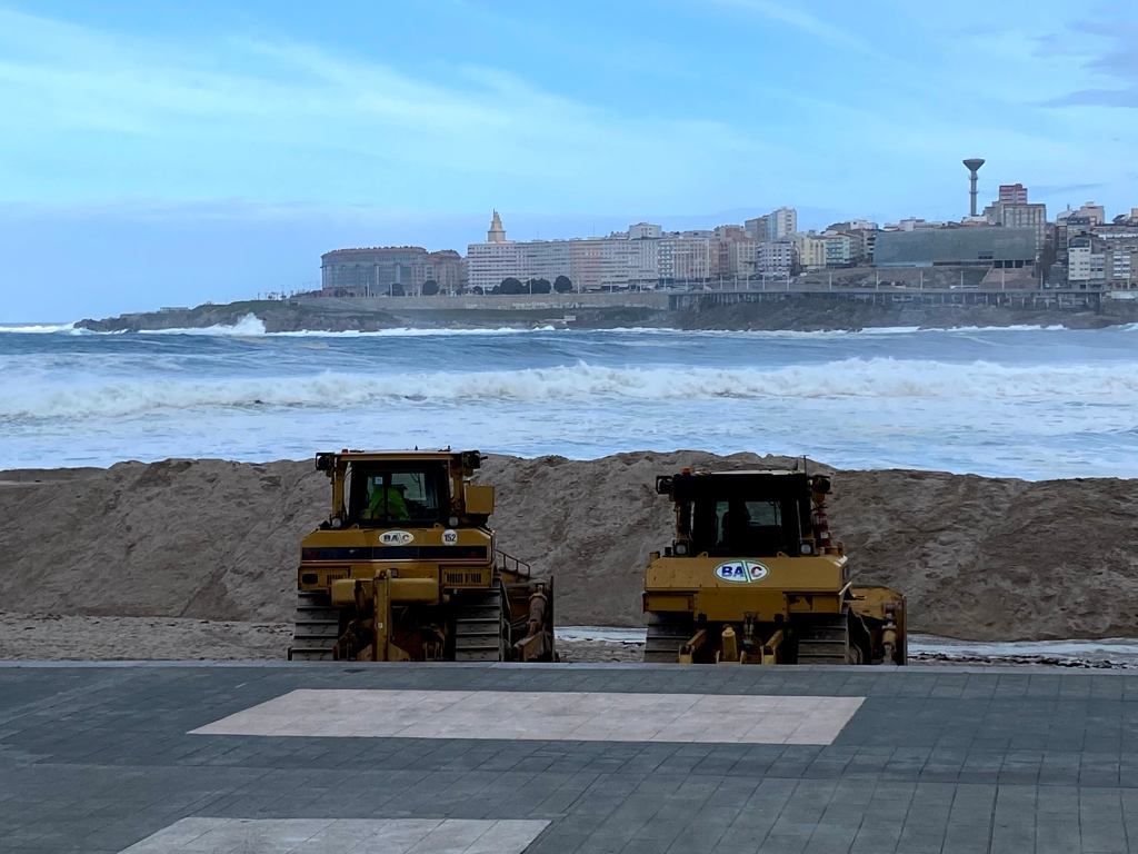 En primer lugar tenemos una vista general de Riazor, donde en estas últimas fechas las bulldozer trabajaban para preparar las dunas que deberían servir de contención a los temporales, de los cuales en esta pasada semana hemos tenido el primero y bastante significativo.