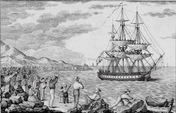Imagen de la partida del Maria Pita, desde el puerto de A Coruña.