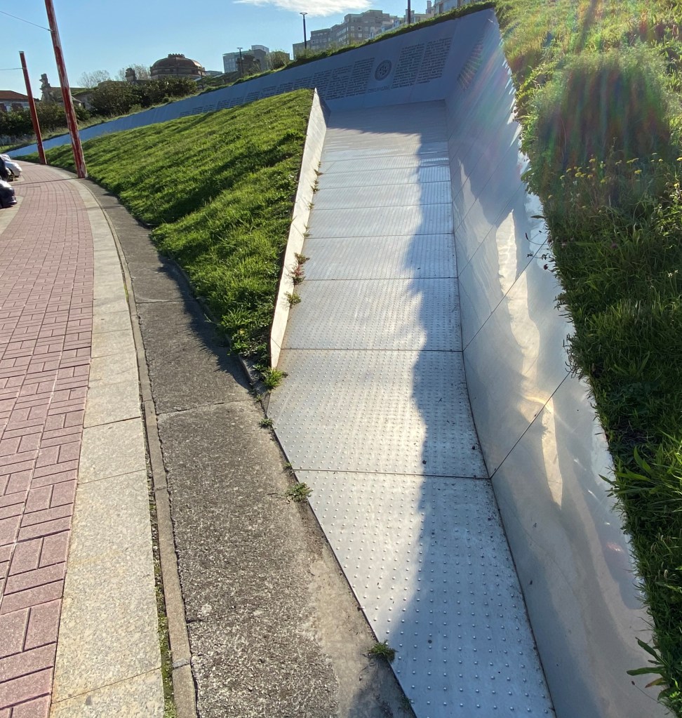 Poco más adelante se termina el paseo actual, bajo la carretera que asciende hacia el Parque de Bens. En esa esquina está situado un pequeño monumento, junto a una placa que recuerda al coruñés que falleció cuando hace ya muchos años el antiguo vertedero se desplomó hacia el mar, arrasando todo lo que encontraba a su paso. Y continuando la bajada hacia el puerto de O Portiño, encontramos otro monumento, en este caso conmemorando a los coruñeses (creo que en número de 17) que cuando las tropas «nacionales» tomaron la ciudad intentaron escapar por mar para evitar ser masacrados. Al parecer solo unos pocos lo consiguieron.