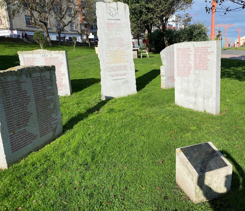 Si continuamos ruta, pasamos al poco rato por la gran rotonda de la que nace la vía que nos llevaría a la Torre, pero en esta ocasión la dejamos al margen (el paseo por ahi merece consideración especial y será objeto de un capítulo específico con todo lo que conlleva, incluido el parque de los Menhires y demás). Y un poco más adelante, junto a otra rotonda, encontramos a la derecha un monumento a los represaliados de A Coruña y comarca durante la guerra civil. Es algo que de forma habitual pasaría sin ser visto, pero que dejo aqui reflejado.