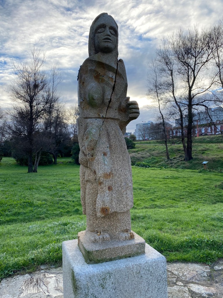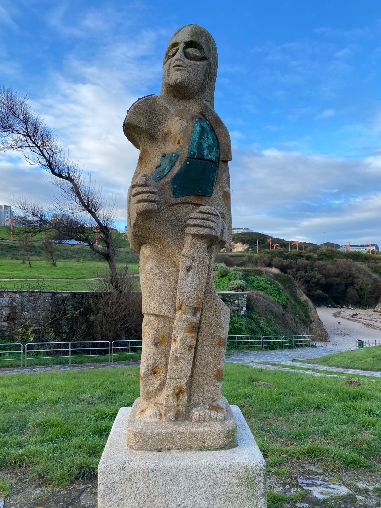 Suelo comenzar el recorrido por un camino de tierra anejo al Aquarium bajo el paseo y que lleva directamente hacia la playa de Las Lapas. Y lo primero que aparece antes de iniciar la subida hacia la izquierda, es el grupo de los Artabros que recuerdan la presencia de esos pobladores en nuestras tierras. Son tres figuras que representan a una mujer, un marinero y un guerrero, como un esquema de la sociedad de esa etapa.