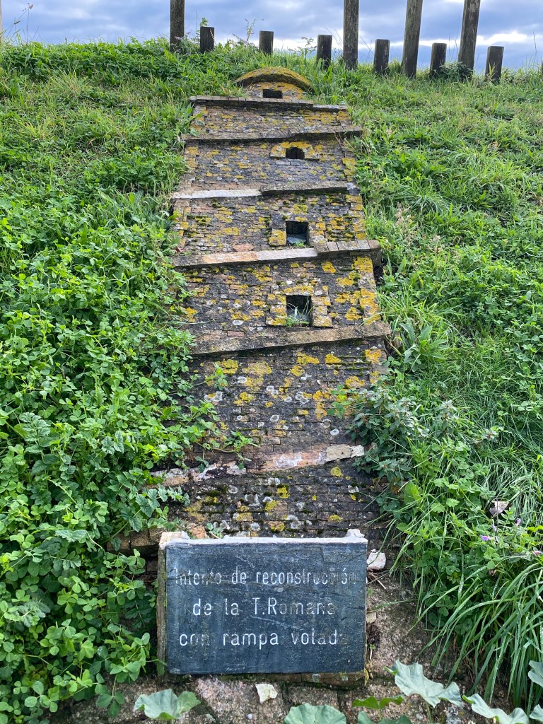 Por último, en esta zona y realizadas sobre la hierba, hay cuatro tipòs de fachadas que señalan la evolución de lo que ha sido a lo largo de los siglos el aspecto de la Torre, tras varias reconstrucciones.