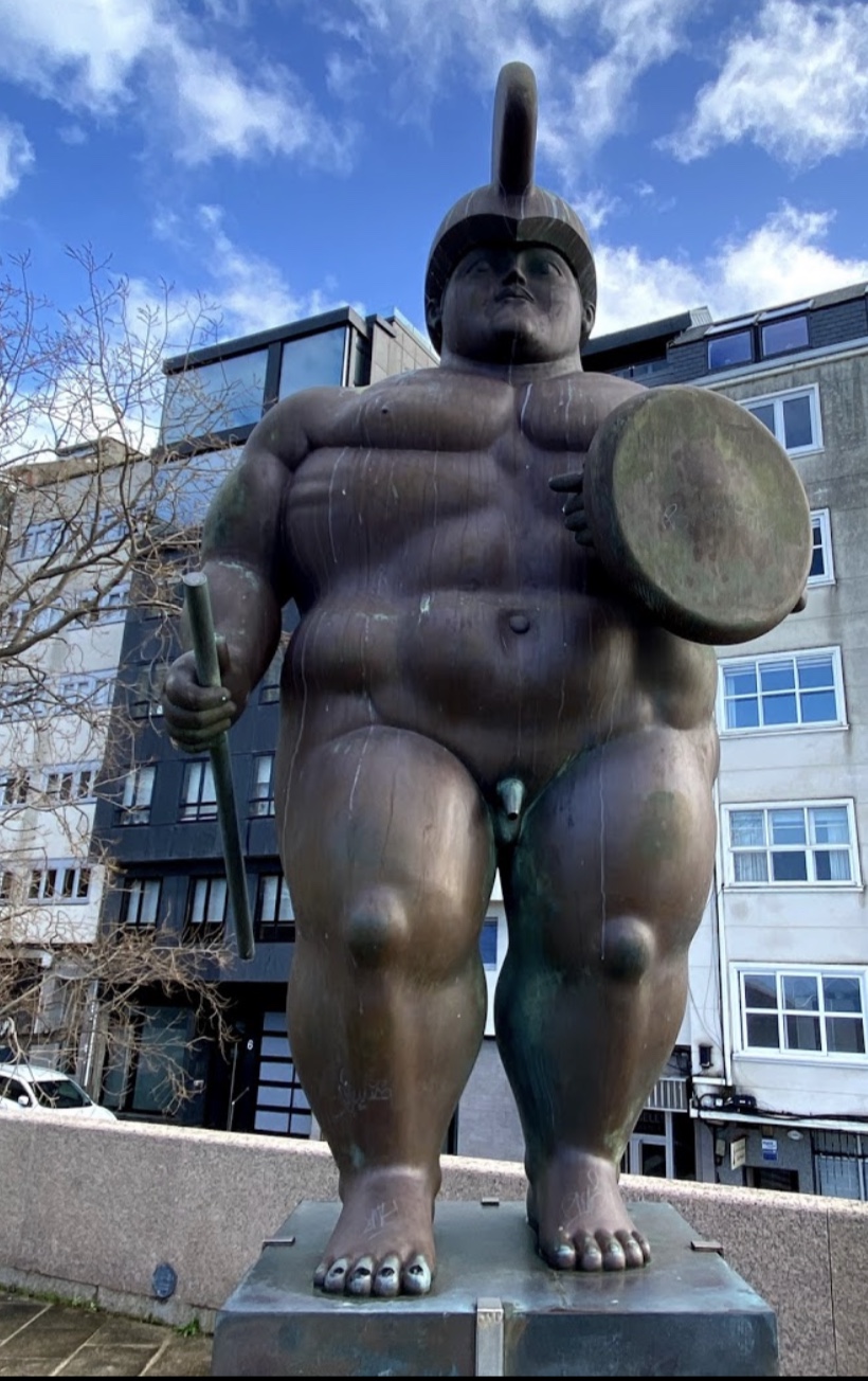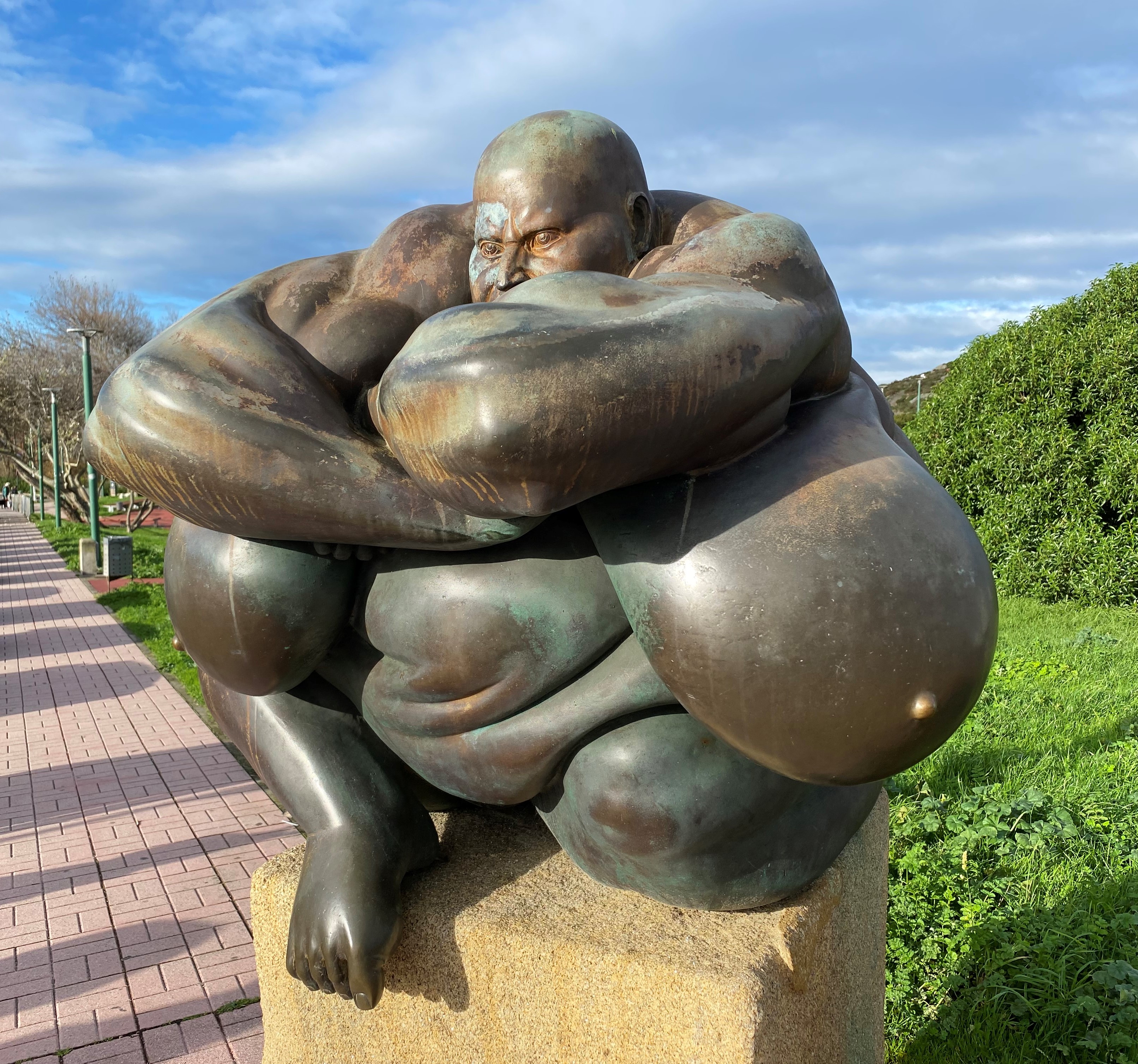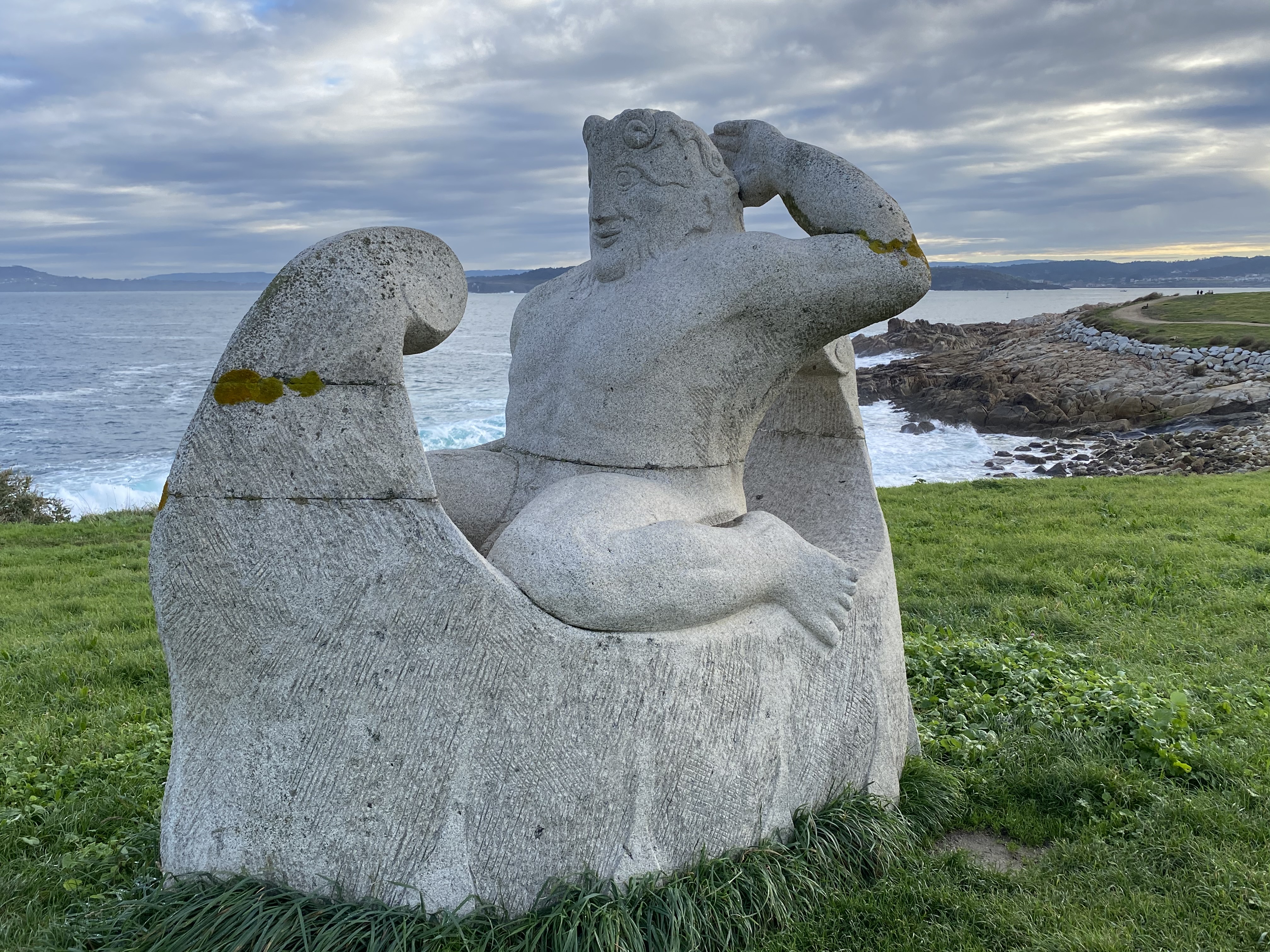 Suelo comenzar el recorrido por un camino de tierra anejo al Aquarium bajo el paseo y que lleva directamente hacia la playa de Las Lapas. Y lo primero que aparece antes de iniciar la subida hacia la izquierda, es el grupo de los Artabros que recuerdan la presencia de esos pobladores en nuestras tierras. Son tres figuras que representan a una mujer, un marinero y un guerrero, como un esquema de la sociedad de esa etapa.
