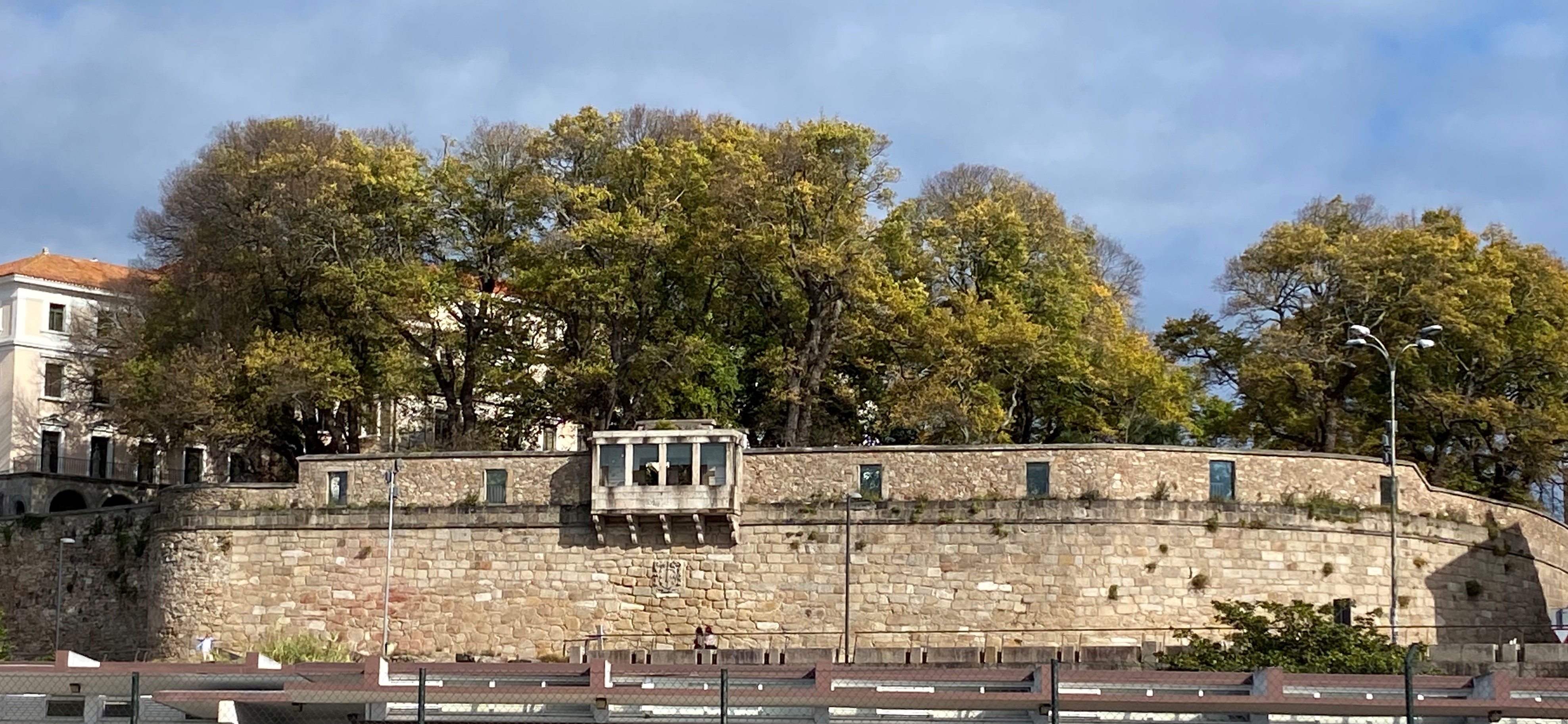 Ya dirigiéndonos hacia la dársena pasamos antes frente a las instalaciones de La Solana (ubicadas sobre la antigua playa del Parrote) y desde esa zona se observa a lo lejos la parte externa del Jardín de San Carlos, que en otro tiempo fué la construcción más próxima a las murallas (todavía se guardan algunos restos y en ellos algunos cañones que en su momento sirvieron para defensa de la ciudad.
